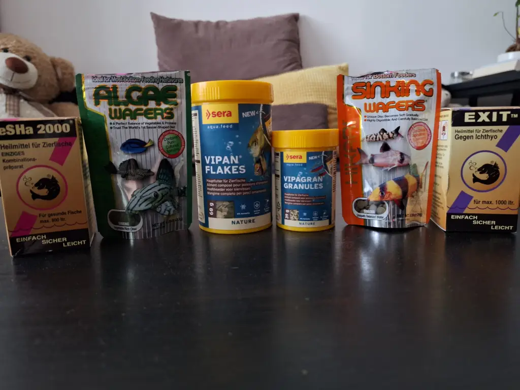 *Johnyho Pisces* | Dokúpené zásoby krmiva, liečiv a prípravku na vodu. Vyzerá že nové krmivo chutí, konečne mi ryby prijímajú aj granulové krmivo. |