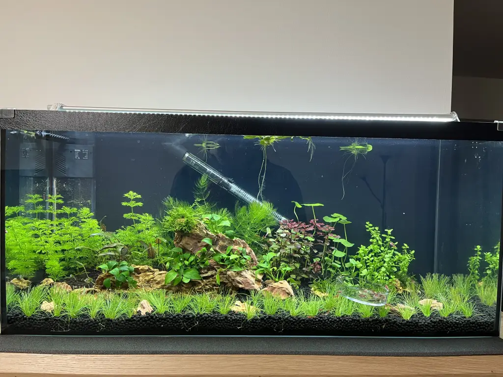Náhradník za mé první akvo | Výměna vody tentokrát 75l minulý týden jsem se na to vybodl. Očista skla Zastřihnutí rostlinek Odkalení dna |