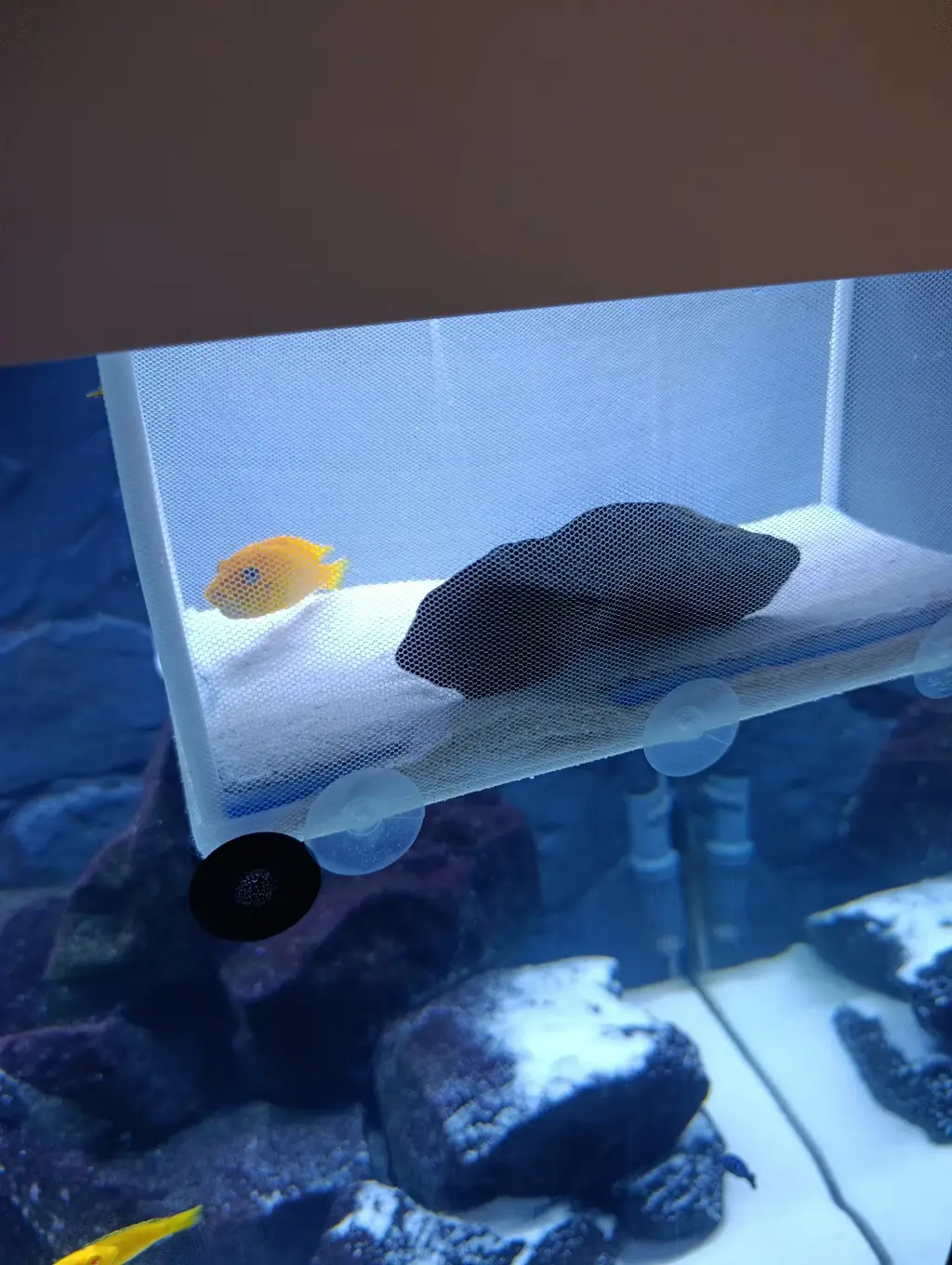 "Hora Osudu II" Malawi | Tak dnes se konečně zadařilo po dvou neúspěšných týdnech lovení chytit samičku Tlamovce Modro/Žlutého Zebra kde bylo očividné že má plnou tlamu malých. Po odchytu je pustila z tlamky, napočítal jsem jich 22 kousků, krásně vyvinutých, asi půl samečci a půl samičky. Po přesunu do porodničky si je hned nasála zpět do tlamky. Jak se jí tam vejdou vůbec nechápu. Nicméně jsem tam dal nějaký ten písek a kámen ať se mají za co schovat až je vypustí. Je to můj první pokus v porodničce tak jsem zvědavý. Jinak se ve skulinach stále objevuje pár prcků s předešlých snůšek kteří stále úspěšně bojují o přežití |